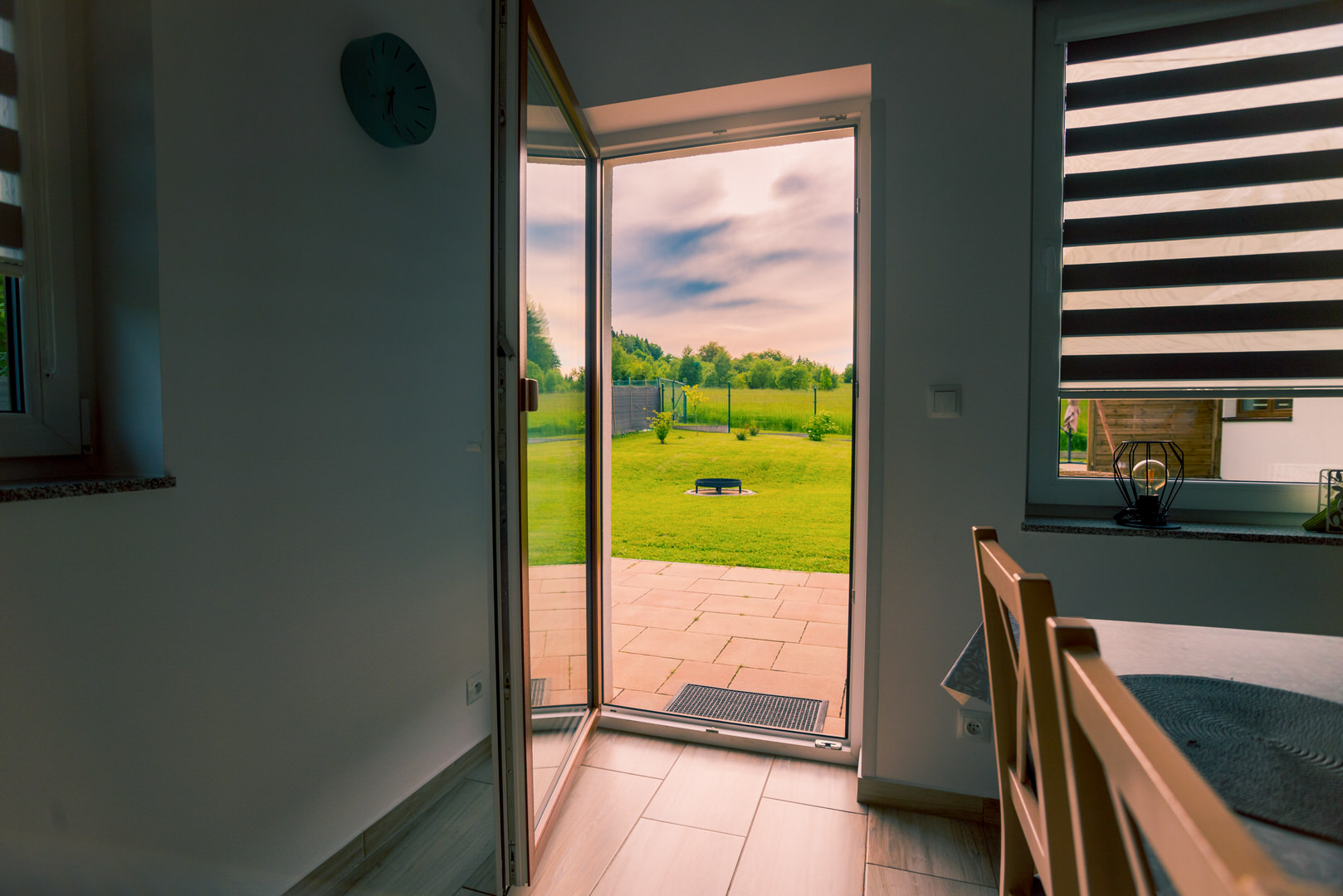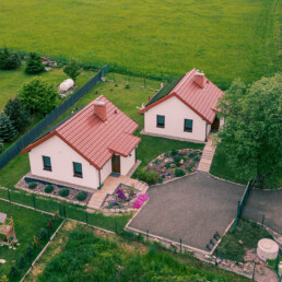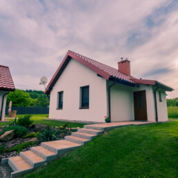 Przed budynkami znajduje się plac parkingowy mieszczący 3 samochody osobowe. Teren przyległy do domków jest ogrodzony i oświetlony, wejście na posesję jest możliwe przez bramę lub furtkę. Do dyspozycji gości oddajemy również wydzielony teren rekreacyjny, z którego można korzystać w sezonie letnim.